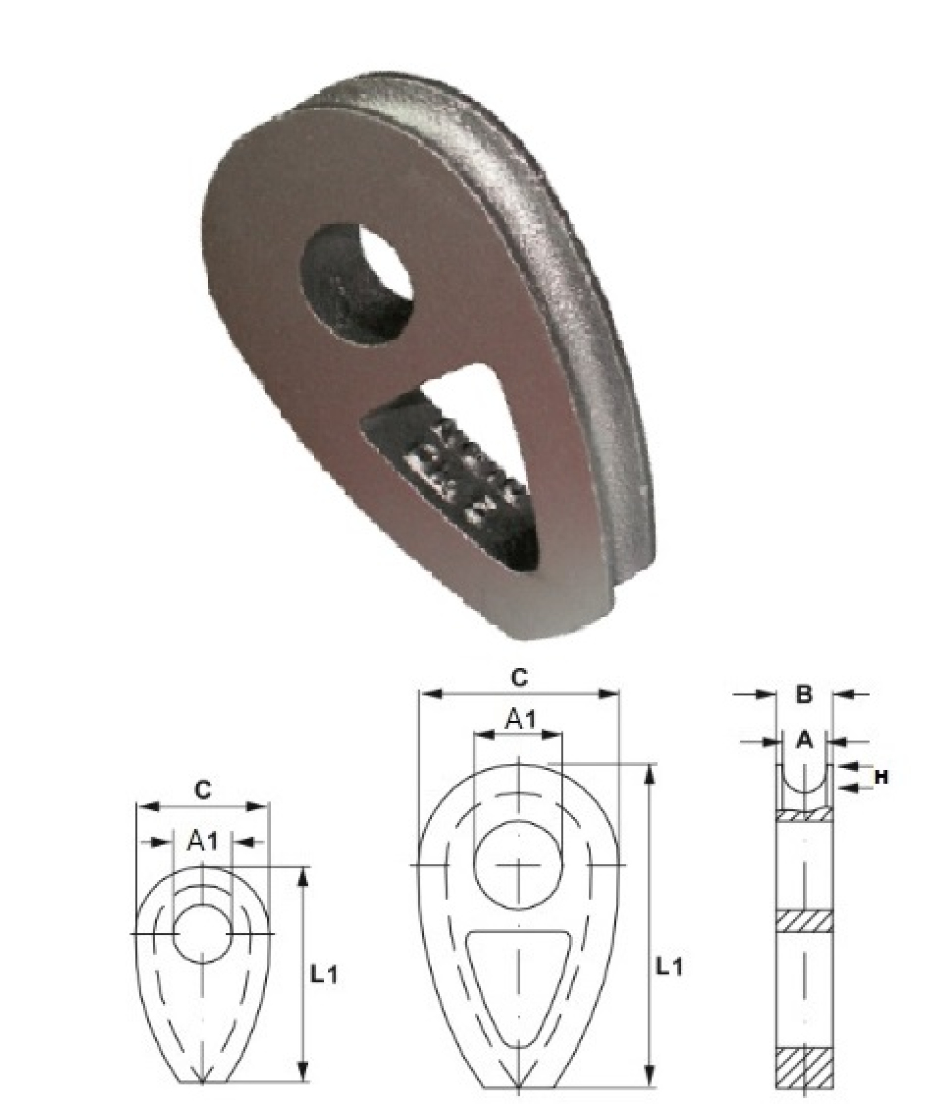 Öntvény nehéz kötélszív, horganyzott és natur kivitelben és standard nyers furattal.